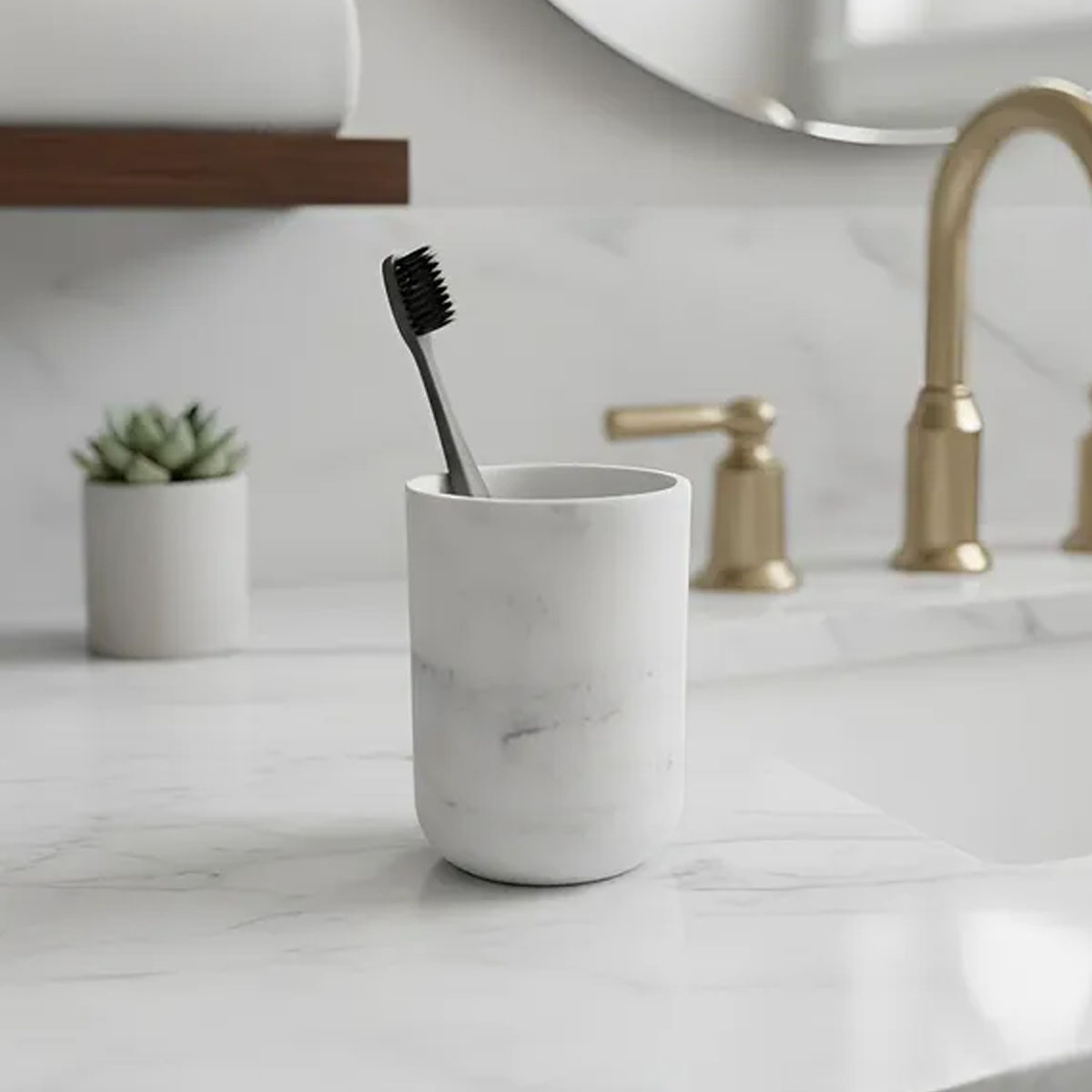 VASO PORTA CEPILLO RESINA MÁRMOL BLANCO OPACO